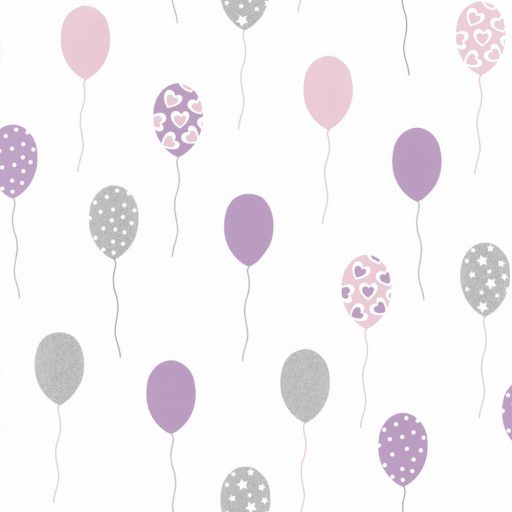 Caselio Girl Power 100865838 Gyerekszobai szines léggömbök fehér rózsaszín lila szürke ezüst csillogó tapéta