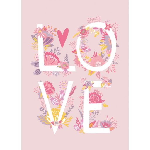 Caselio Girl Power 100994220 Gyerekszobai LOVE felirat virágokkal rózsaszín fehér szines falpanel