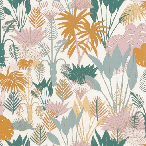 Caselio L ODYSSEE 101417607 PHILIPPINES Natur dzsungel krémfehér zöld narancs rózsaszín világoskék csillogó fémes fény tapéta