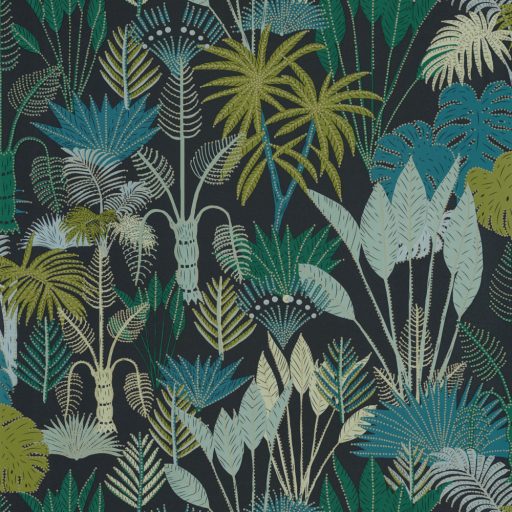 PHILIPPINES Natur dzsungel mélykék zöld árnalatok bézs csillogó fémes fény tapéta