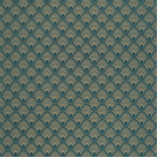 Caselio L ODYSSEE 101456903 MAYOTTE Natur retro trópusi madár stilizált tollazata sötét zöldeskék arany fémes csillogó fény tapéta