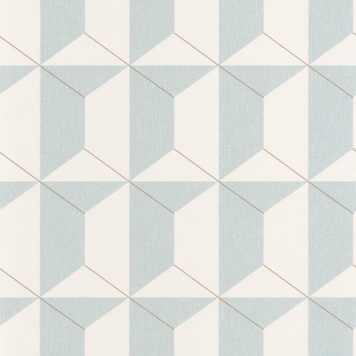 háromdimenziós hatású csempeminta krémfehér halvány kékeszöld fémes csillogó arany tapéta