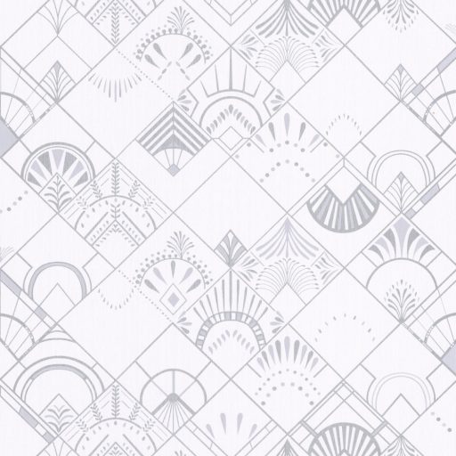 Caselio Scarlett 100450017 GOLDEN YEARS Retro kortárs geometrikus díszítőminta hűvös fehér szürke csillogó ezüst tapéta