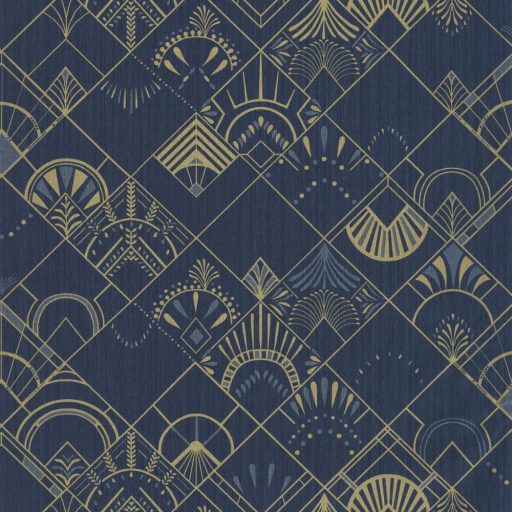 GOLDEN YEARS Retro kortárs geometrikus díszítőminta mély sötétkék csillogó arany tapéta