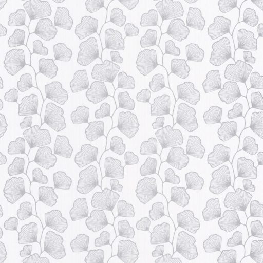 Scarlett 100480000 GINGKO Natur stilizált gingko levelek hűvös fehér csillogó ezüst tapéta