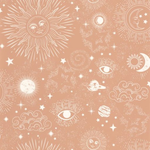 Caselio Young and Free 103244040 AsztroTrend Világűr szimbolikus minta kelta nap hold csillagok szemek nyers barna krém tapéta