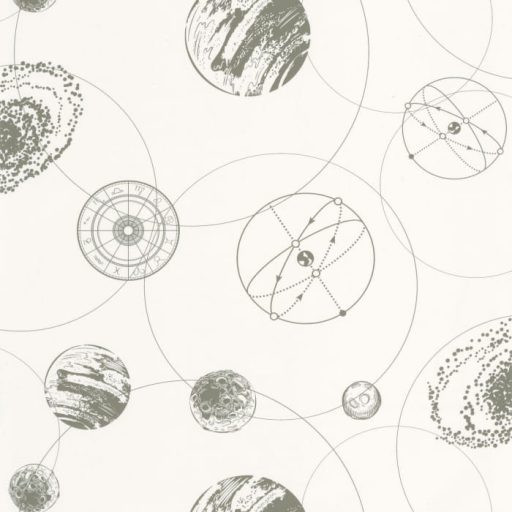 Caselio Young and Free 103257077 Asztro Trend Bolygók Galaxisok fehér szürke és khakizöld árnyalatok tapéta