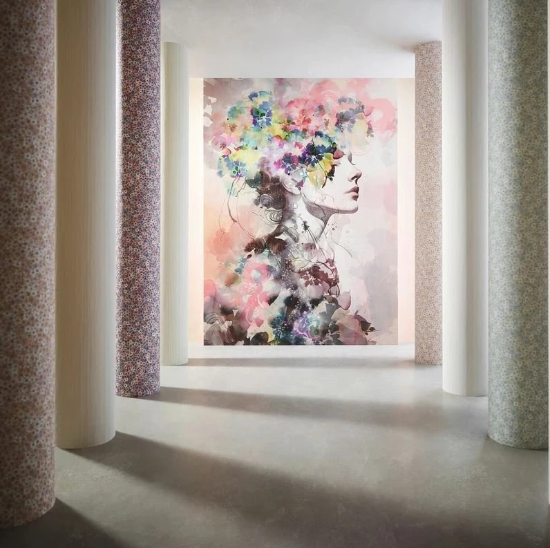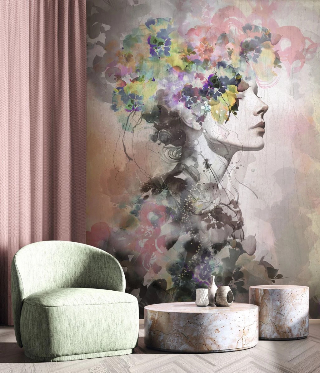 Ez a lenyűgöző tapétaposzter akvarell-szimfóniát teremt a falon, ahol a gyűrt