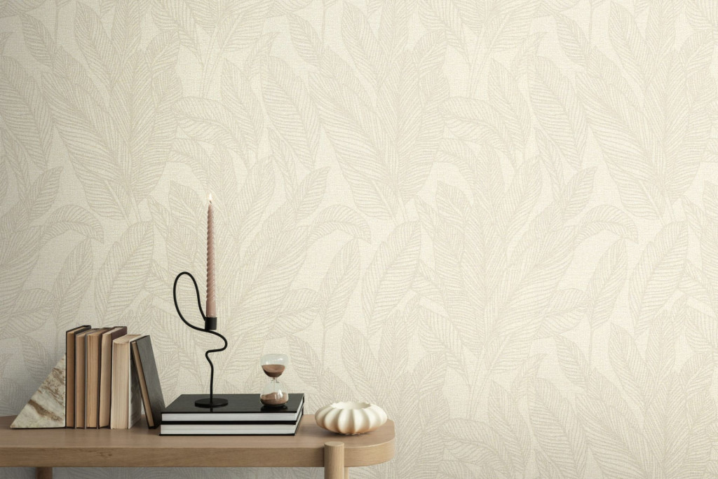 Tipp : Finom pálmalevél mintázat, ami diszkréten bújik meg a világosbézs