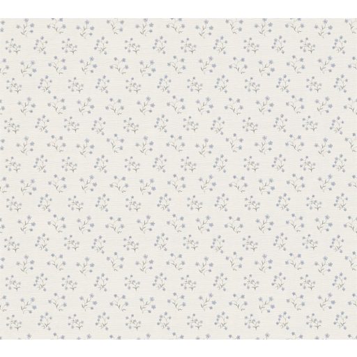 Diszkrét filigrán apró virágminta törtfehér szürke és kék tónus tapéta