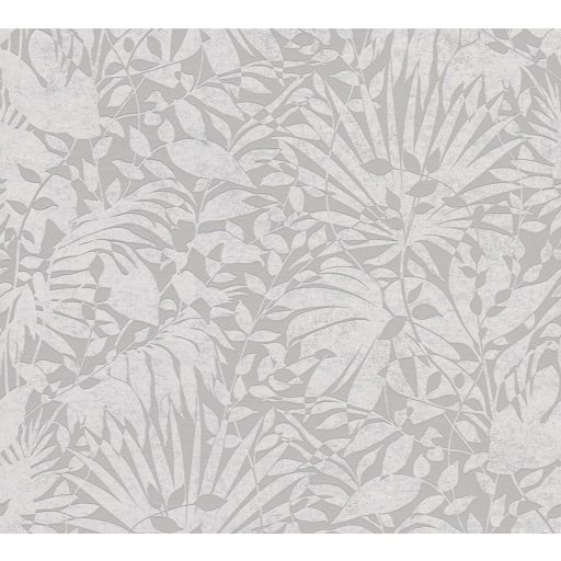 Dús vegetáció - markáns levélmintázat szürke és ezüst tónusok határozott mintafény tapéta