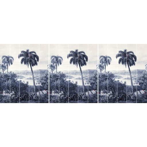 EMIL & HUGO Zanzibar 290331 LEOPARD Natur Trópusi finom rajzolatú dzsungel panoráma leopárddal kőmosott indigókék homokszín digitális panel
