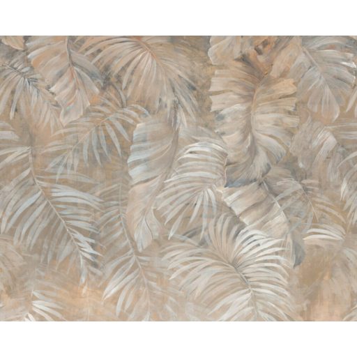 Egész estés/falas/ történet - teljes falat beborító trópusi levelek fehér bézs szürke barna és narancs tónus falpanel