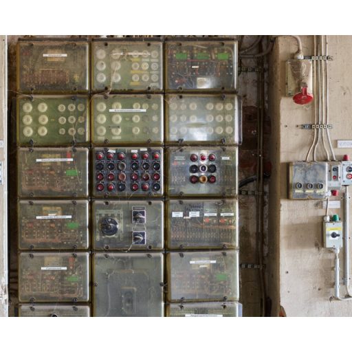 Egykor az ipar fellegvára - Elhagyott gyárcsarnok kapcsolódobozai bézs barna szürke szines falpanel
