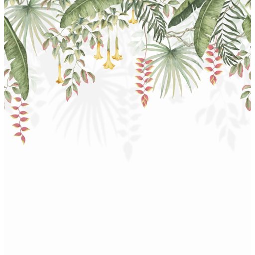 heliconiák és buja lombok záporoznak a mennyezetről. Akvarell festésű