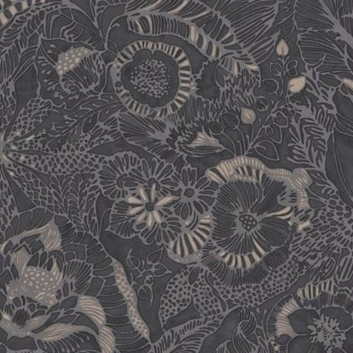 Eijffinger ENSO 386511 rusztikus virágok növények bézs fekete szürke csillogó fémes fény tapéta