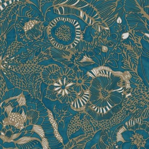 Eijffinger ENSO 386513  rusztikus virágok növények petrolkék bézs arany csillogó fémes fény tapéta