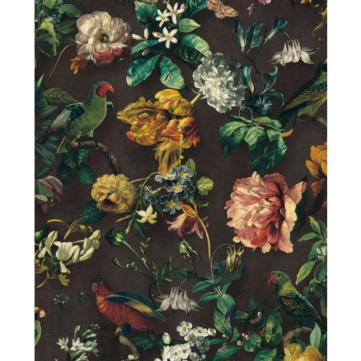 Eijffinger MUSEUM 307300 Vintage műalkotás virágok és madarak páratlanul gazdag megjelenése antracit zöld szines tapéta