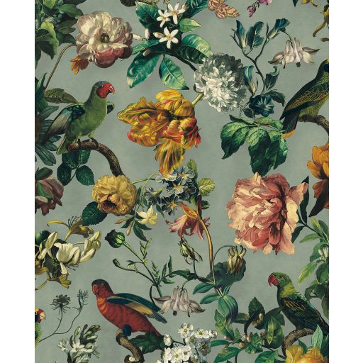 Eijffinger MUSEUM 307302 Vintage műalkotás virágok és madarak páratlanul gazdag megjelenése pasztell zöld zöld szines tapéta