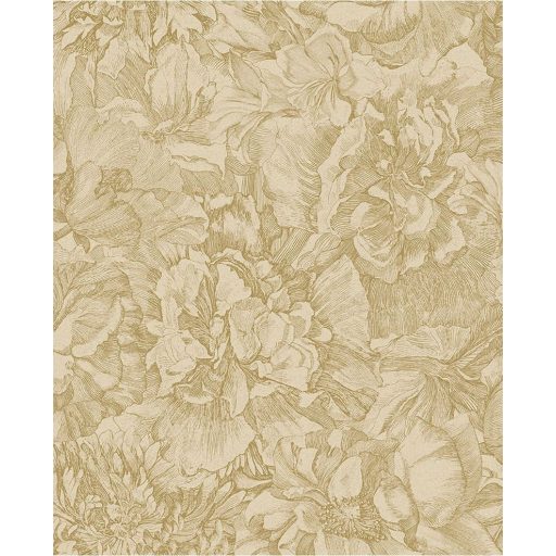 Eijffinger MUSEUM 307341 Romantikus virágos sűrű szirmok grafikus ábrázolása sárgásbézs arany tapéta