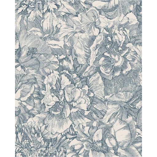 Eijffinger MUSEUM 307343 Romantikus virágos sűrű szirmok grafikus ábrázolása törtfehér kék szürkéskék tapéta