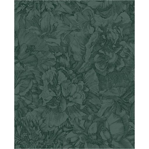 Eijffinger MUSEUM 307345 Romantikus virágos sűrű szirmok grafikus ábrázolása sötétzöld fekete tapéta