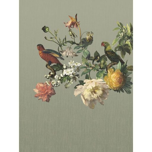 Eijffinger MUSEUM 307402 BIG BIRD Vintage Virágos kivételes szépségű vírágminta papagájokkal pasztell zöld szines falpanel