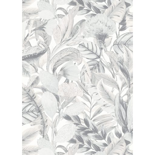 Erismann ELLE Decoration 2, 10202-10 Natur Botanikus nagyformátumú levélminta fehér krém szürke ezüst fényes mintarészletek tapéta