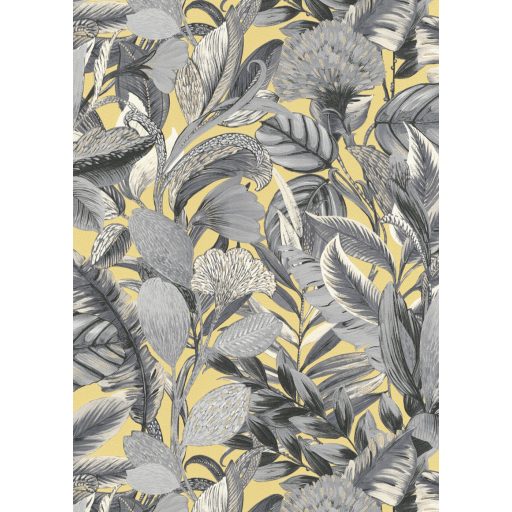 Erismann ELLE Decoration 2, 10202-15 Natur Botanikus nagyformátumú levélminta aranysárga bézs szürke ezüst fényes mintarészletek tapéta