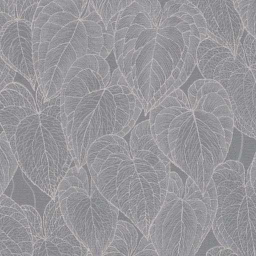 Ezüsttel kontúrozott és erezett egymásra épülő dekoratív levélfantázia szürke bézs és ezüst tónus fémes hatás tapéta