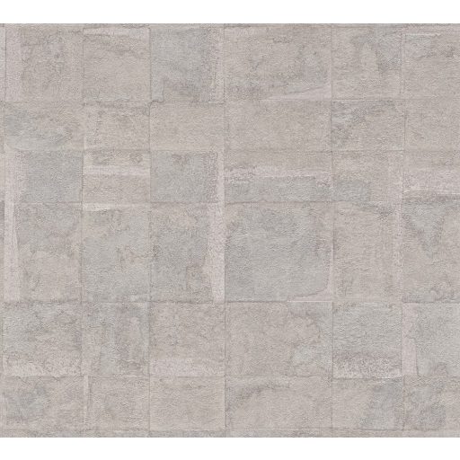 Fémes elemekkel díszített modern csempehatású 3D beton mintázat szürke szürkésbézs rózsaszín és ezüst tónus tapéta
