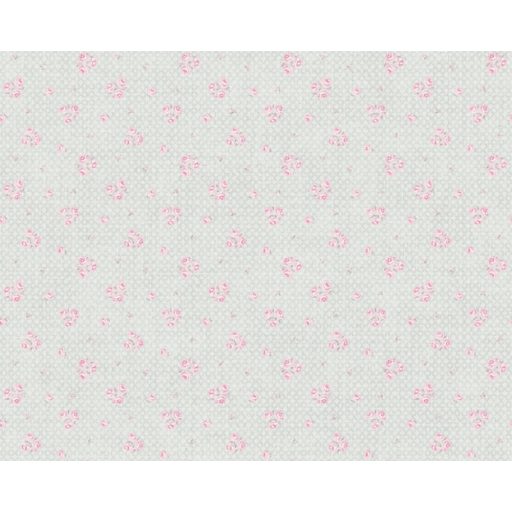 Finom káró/rombusz/kockás/ alapon kis bimbózó rózsák törtfehér szürke és rózsaszín/pink tónus tapéta