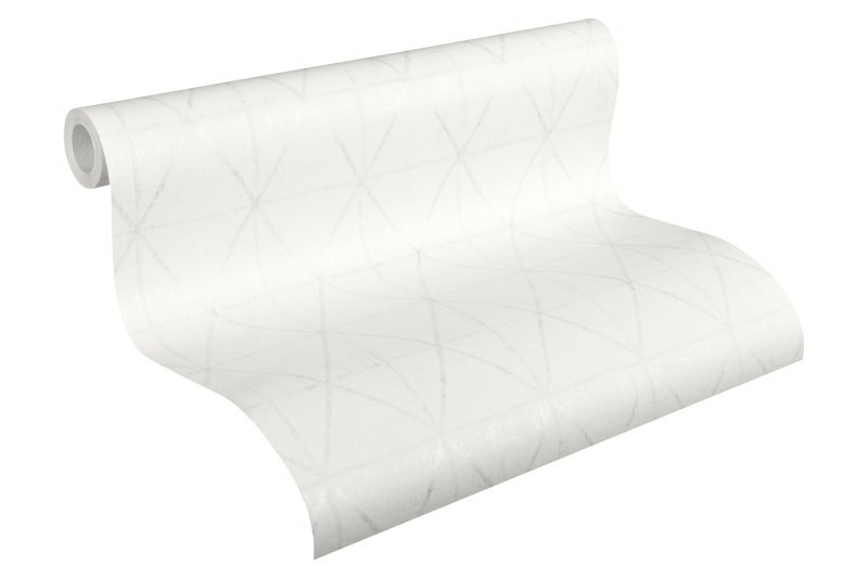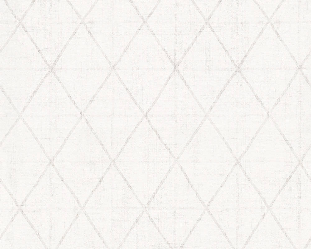 Finom vonalakkal rajzolt geometriai rombuszminta fehér világosszürke és halvány ezüst tónus finom mintafény tapéta