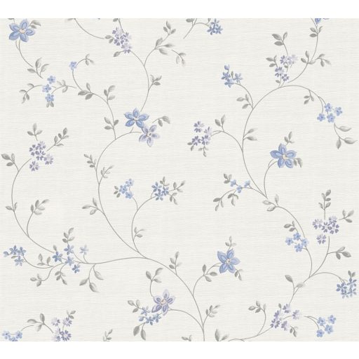 Finoman rajzolt filigrán virágindák fehér kék és szürke tónus tapéta