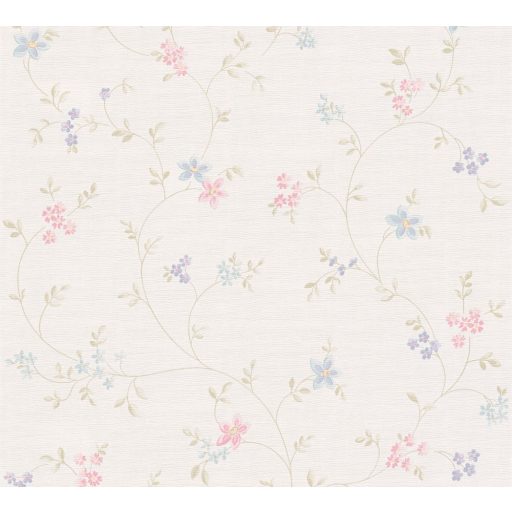 Finoman rajzolt filigrán virágindák fehér kék zöld és rózsaszín pasztell tónusok tapéta