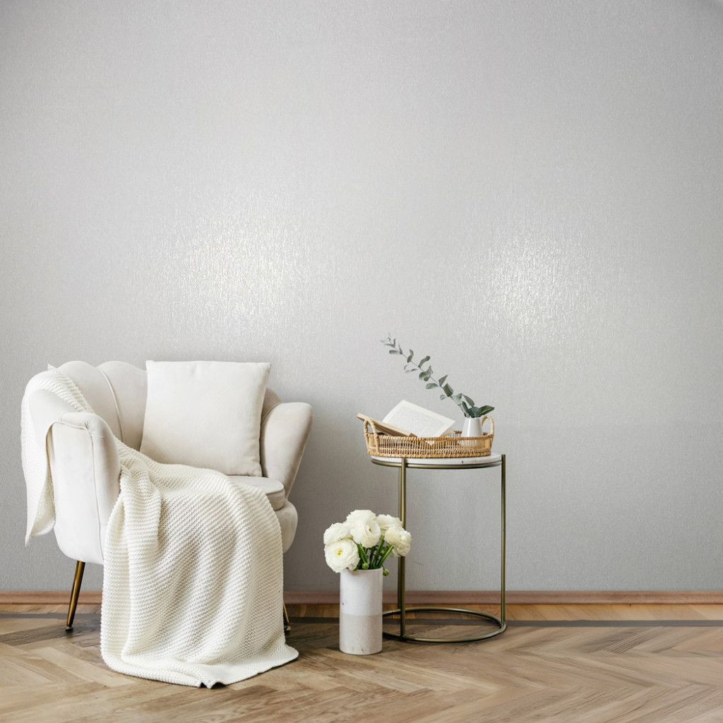 A felület finoman texturált, mintha kézzel szőtt selyem simulna a falr, és minden