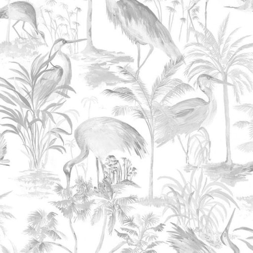 kecses kócsagokat ábrázol pálmák és páfrányok között fehér és