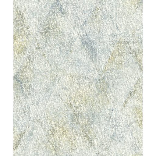 Geometrikus Vintage rombuszminta durva textil háttéren szürkésfehér kék arany kiemelés tapéta