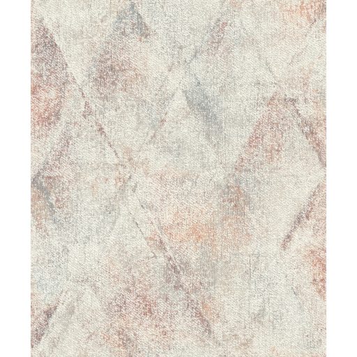 Geometrikus Vintage rombuszminta durva textil háttéren bézs szürke piros fémes réz kiemelés tapéta