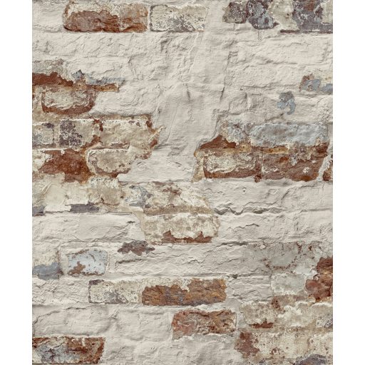 Grandeco Wanderlust WL3302 Patchy Brick Natur/Ipari design kopott habarcsos téglafal szürkésfehér szürke vörösesbarna tapéta