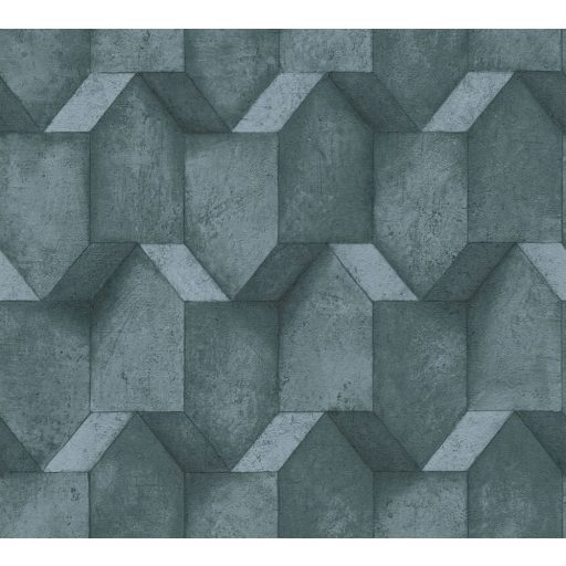 Háromdimenziós geometrikus beton hatású minta kék és szürkéskék tónusok fekete tapéta
