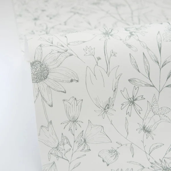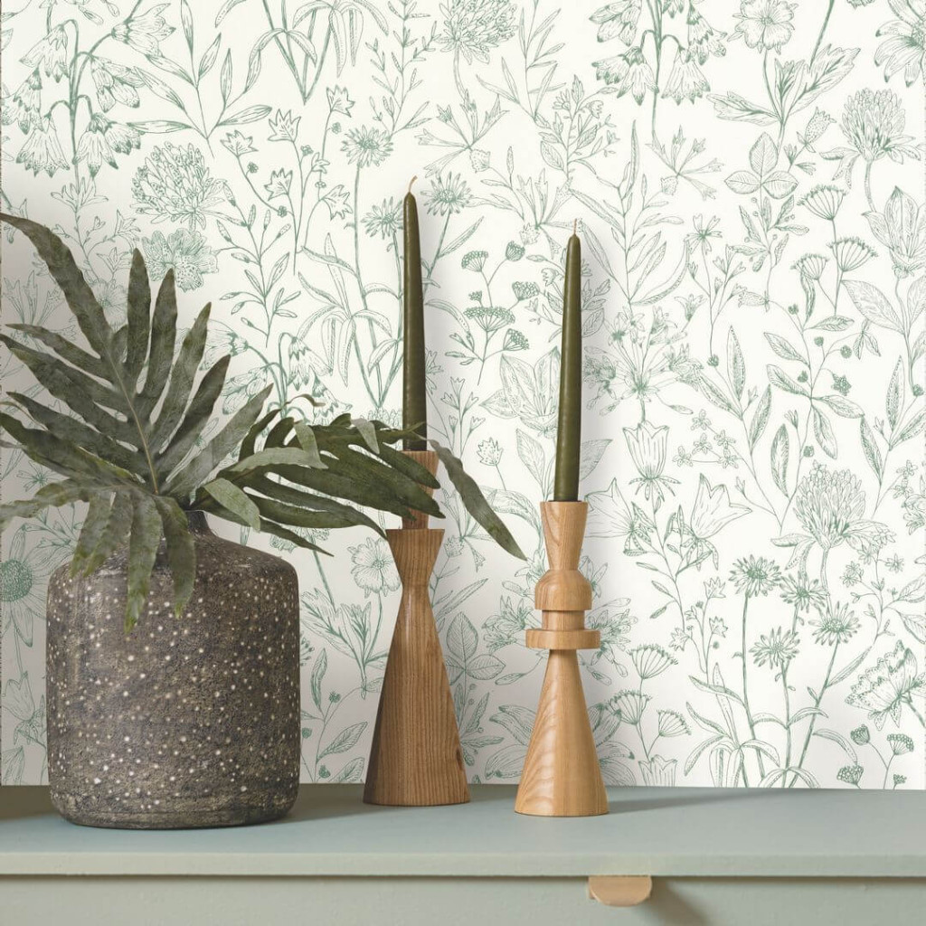 halványzöld vonalrajzokkal megörökített mezei virágok kecses tánca, mintha egy