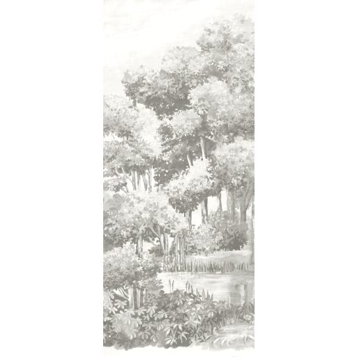 idilli tájat ábrázol. A fák pompásan nőnek a falon és csodálatos madarak