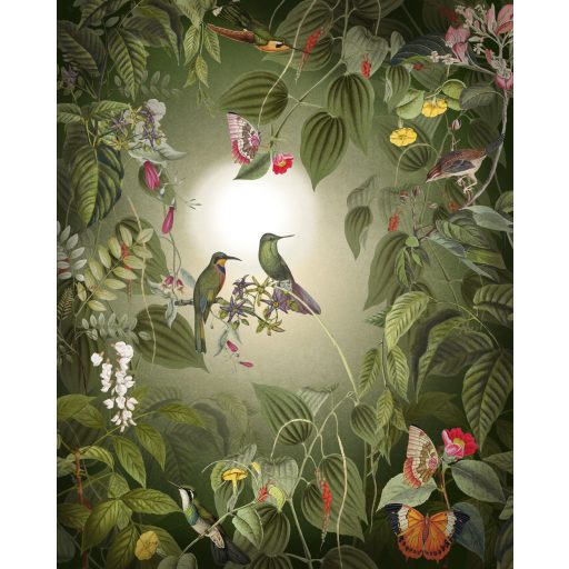 Mintázat : Idilli trópusi életkép - Madarak és pillangók szűrt napfényben