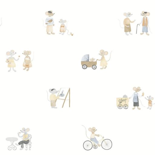 egércsaládot ábrázol. Itt az egerek sétálnak, beszélgetnek, kávéznak,