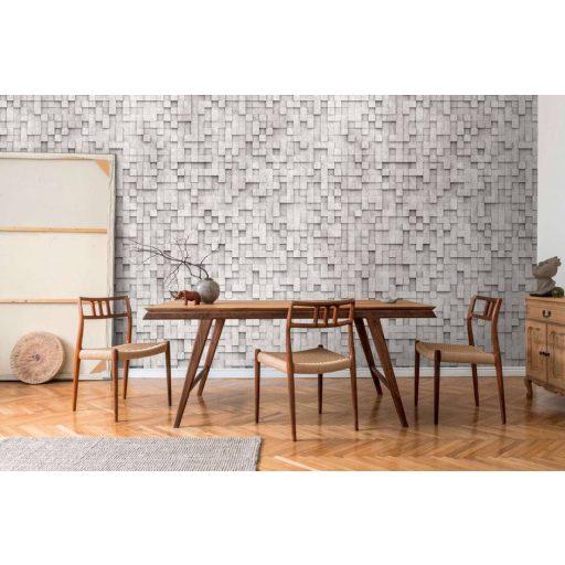 Itt aztán van térerő avagy játék négyzetekkel térbeli geometrikus beton dekor fehér és szürke tónus falpanel