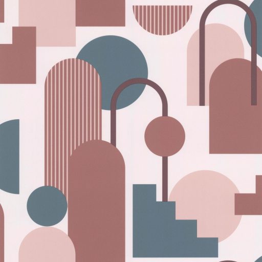Ívelt formákból álló geometriai minta - boltívtől a teljes körig krém zöldeskék rózsaszín tapéta