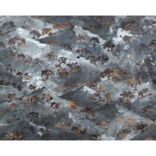 Japandi stílusú természet ábrázolás - Hegyvonulat bonsai fákkal fehér szürkéskék szürke és barna tónus falpanel