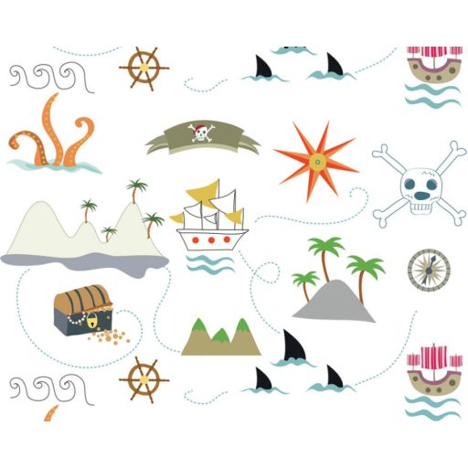 Kalandos tengeri út a Kincses szigethez fehér kék narancs szines gyerekszobai falpanel