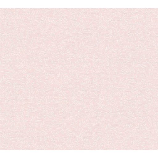 Karcsú ágakon filigrán levelek mintája rózsaszín és krémfehér tónus tapéta